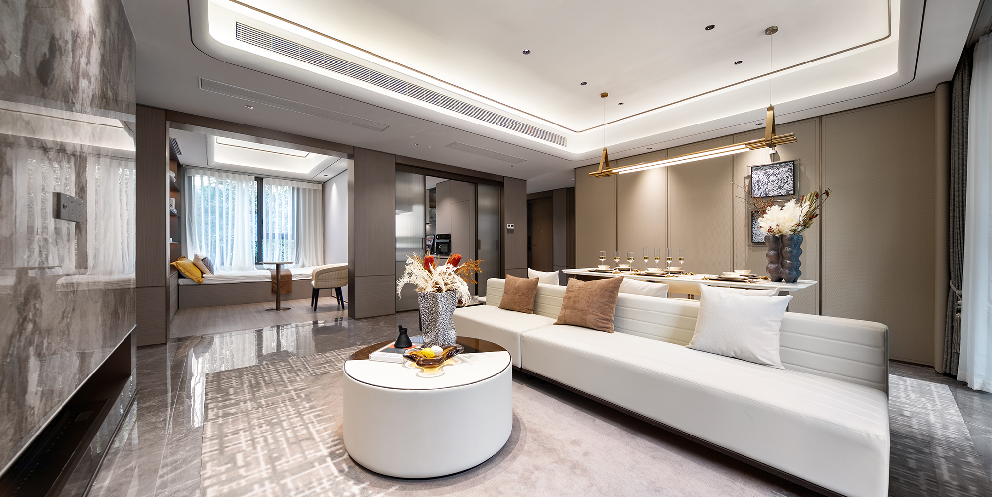 【中空玻璃】采用三玻两腔材质,隔热隔音节能效果极佳,为居者营造静谧墅居