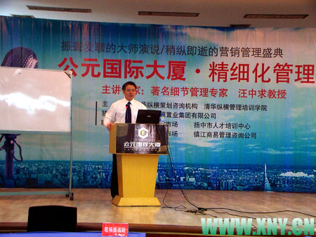 5月19日,由集团公司公元国际大厦独家冠名的精细化管理论坛在扬州石塔宾馆顺利举行。被誉为细节专家;的汪中求先生也应邀亲临举行专题讲座,给扬州近400位企业家及商界人士传播最新管理理念精细化管理,集团领导参加了学习交流。