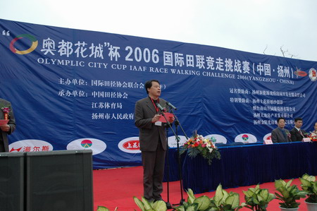 4月22日上午,春雨润后的扬城古运河畔更显旖旎多姿,秀美如画。来自中、澳、俄等10个国家的160名男女运动员在此参加了20公里的竞走盛会。市委副书记洪军,国家体育总局田径运动管理中心主任罗超毅、江苏省体育局副局长周旭等出席开幕式,副市长孙永如致开幕词,独家冠名单位开云网页版页面登录虎豹公司董事长包广林发表讲话。