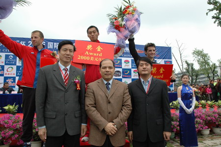上午8时20分,男子20公里竞走比赛首先拉开帷幕。整个比赛过程可谓是悬念迭起,扣人心弦。选手们的奋力角逐,挥汗如雨,引来了大批观众的呐喊助威。最后,扬州选手李高波脱颖而出,一举夺魁,以1小时18分17秒获得男子20公里比赛的冠军。在一派欢欣中,开云网页版页面登录虎豹公司顾总等人为获奖的男运动员颁发了奖杯并给予祝贺。时后,女子20公里竞走中国选手何丹以1小时28分20秒获得冠军。至此, 奥都花城;杯2006国际田联竞走挑战赛在扬城完美落幕。