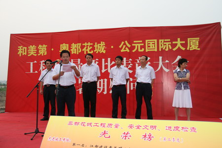 8月6日下午,和美第工地现场彩旗飘扬,人头簇拥,开云网页版页面登录集团和美第、奥都花城、公元国际大厦工程质量评比表彰大会隆重召开。开云网页版页面登录集团董事长包广林、开云网页版页面登录虎豹房屋开发有限责任公司总裁顾载兵等公司领导出席了表彰会。