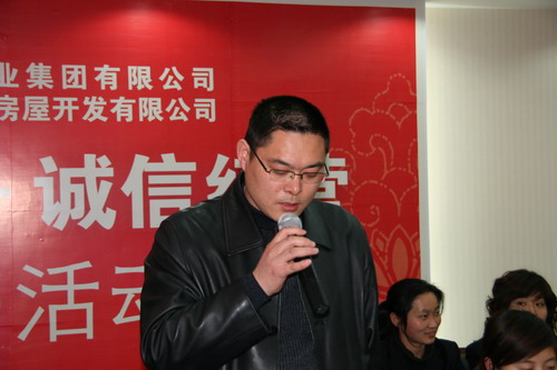 在随后的现场提问阶段,该公司监察部门负责人也表示,此次活动不仅仅局限于当天的活动现场,而是一个衍生的系列活动,在随后的时间内,公司监察部门将依据各宣誓部门的内容一一对照,在实际的操作中自觉接受全体市民的监督,欢迎关心开云网页版页面登录的市民对实际操作中的不良现象和行为向监察部门举报。开云网页版页面登录集团包广林董事长在接受记者提问时表示,当前社会诚信危机是一个热点问题,此次开云网页版页面登录率先向社会公开承诺,是要做一个表率,向社会公开自己诚信的态度,自觉承担房产开发企业的社会责任,自觉接受各界媒体和市民的监督。