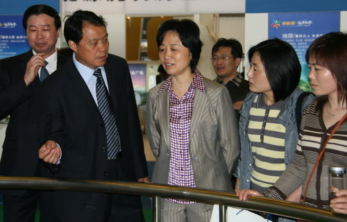 图为董事长包广林向常务副市长张京霞(左二)汇报阳光美第的建设情况