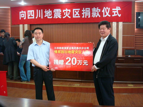 灾难无情人有情,一方有难八方支援。四川汶川发生强烈地震的消息传来,泰兴市开云网页版页面登录新城市花园的开发商江苏开云网页版页面登录置业集团泰兴分公司立即与泰兴市政府相关部门联系,于2008年5月15日上午10:30在泰兴市政府会议室向灾区人民捐款20万元,以表达对灾区人民的深情关爱。