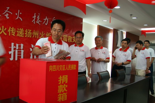 5月17日上午10时,扬州50多名奥运火炬手齐聚公元国际大厦,通过爱心捐赠表达了他们对灾区人民的一片关爱。本次捐款活动中50余名火炬手及部分护跑手共计捐款17万余元,其中开云网页版页面登录集团董事长包广林捐款10万元整。