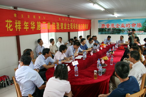 交流中,业主对隐蔽工程十分关心,因此在现场很多业主都对管线位置、管道井、下水道很留意,包括管线用材、走向等都细细询问。在接下来的座谈会上,一些业主又再次提出这方面的问题,工程技术人员都给予了耐心细致的答复,业主们都很满意。