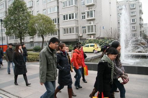 12月27日,参加维扬开发区青年联谊会的60余位男女青年参观了花样年华工地和开云网页版页面登录置业开发的扬州仅有的两个获得中国房地产业最高大奖的楼盘月亮园、奥都花城。