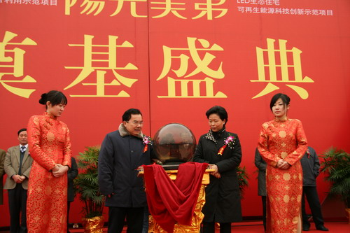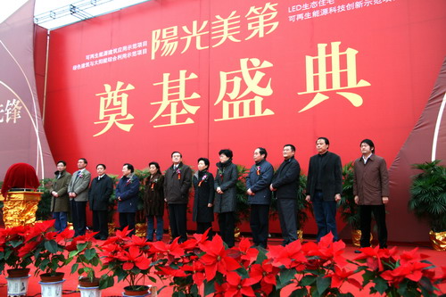据悉,昨日开工的阳光美第;房地产项目,是政府确定的市区首个太阳能生态示范区;,开发商一三个方面求突破:一是住宅功能上,推行地源热泵、节能保温和太阳能利用,居民家中四季恒温,全天供应热水;二是营销上推行精装修与以旧换新;;三是引进五星级物业服务,一键式;智能管理,保姆集中居住、集中管理。目前已有登记住户近300户。