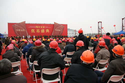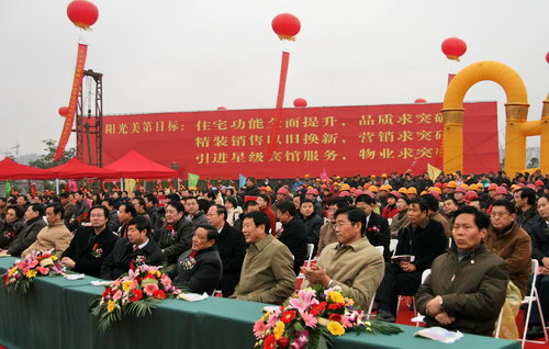 一段时间以来,受到全国房地产市场动荡的影响,扬州开发商也有观望现象,市区已近半年不闻房地产项目开工声。阳光美第;昨日开工,属于逆市而为;、 逆市而上;,因此有许多开发商同行到场助阵。