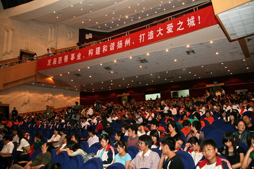 5月19日,扬州这座大爱之城处处涌动着爱心和温暖。在时代广场南大门扬州519慈善一日捐捐赠仪式;主会场,上百家单位踊跃捐款。