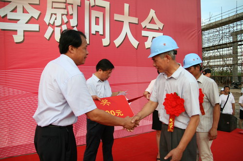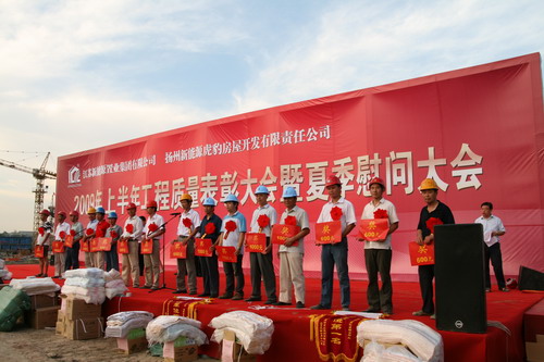 开云网页版页面登录;2009年上半年工程质量表彰大会暨夏季慰问大会7月20日在阳光美第工地举行,和美第、豪第坊、花样年华3个项目的8个先进单位、8 个先进班组和30个先进个人受到了表彰。同时,江苏开云网页版页面登录置业集团有限公司和扬州开云网页版页面登录虎豹房屋开发有限公司的负责同志向所有奋战在开云网页版页面登录;工地的一线建设者发放了夏季慰问用品。23位业主在大会现场受聘担任阳光美第兼职监理员,并接受了开云网页版页面登录虎豹公司颁发的聘书。