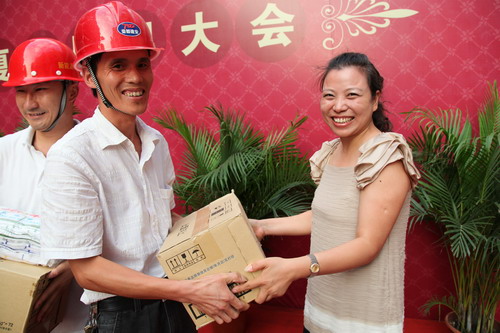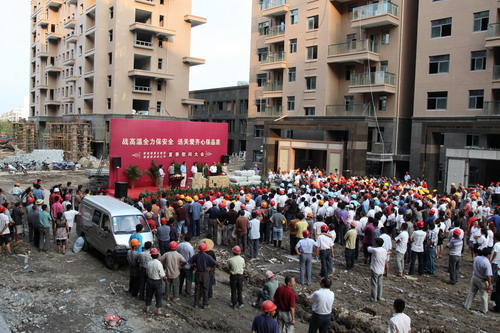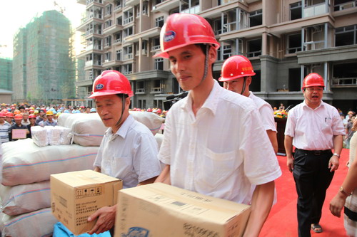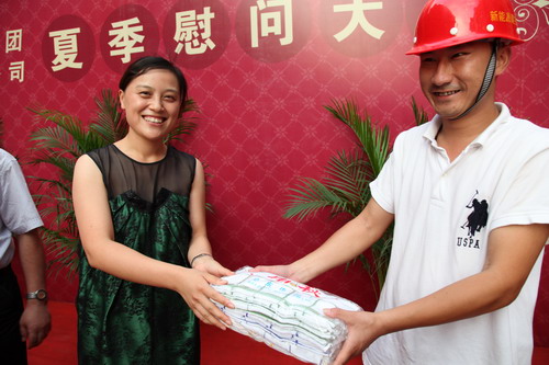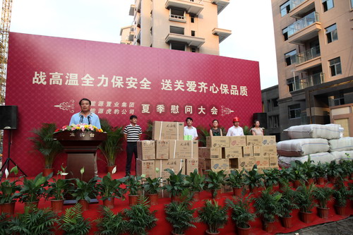 8月7日下午,阳光美第工地上锣鼓喧天,彩旗飘扬,开云网页版页面登录公司在这里隆重举行了夏季慰问大会。开云网页版页面登录集团董事长包广林、开云网页版页面登录虎豹公司顾载兵等公司领导出席了慰问大会。 今年高温天气迟迟不退,对于奋斗在一线的工人,公司领导看在眼里、记在心中,花了近万元为建设工人购买了毛巾、香皂等防暑用品。