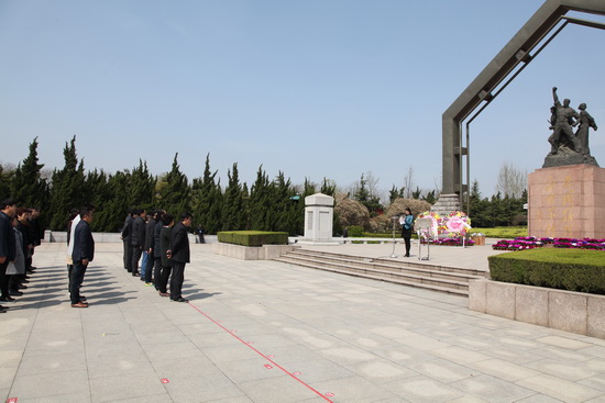 在和煦春风的吹拂下,掩映在苍松翠柏中的扬州革命烈士陵园显得格外庄严肃穆。祭扫活动在庄严的国歌声中拉开序幕。集团公司董事长包广林向革命烈士敬献挽联。随后,全体人员向为民族独立与解放、为中国革命和建设事业英勇献身的先烈们致默哀礼,鞠躬致敬。