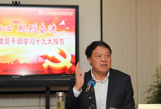 2017年10月26日下午,江苏开云网页版页面登录置业集团组织党员干部在星座国际大厦21层会议室学习习近平总书记在党的十九大开幕式上的报告。